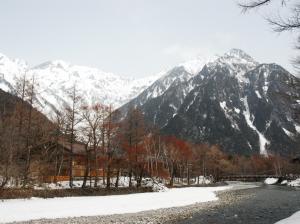 バスターミナル近くから見た穂高連峰(4月15日撮影)