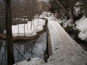 本日(15日)、上高地の状況調査に行きました。21日からのオープンに向けて旅館やホテルの準備が始まっていますが、今年は例年にない雪の多さで除雪に苦労していました。上高地周辺の自然観察遊歩道も残雪が非常に多く、特に大正池から田代橋に至る歩道はすっかり雪に埋もれていて、ルートすら不明になっていました。早く雪が融けてくれれば良いのですが、このままでは観光客の通行ができそうにありません。大正池からの散策を計画されている方はご注意ください。