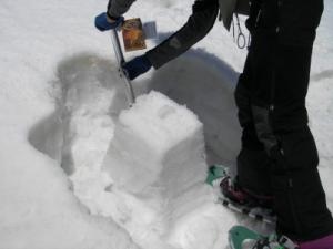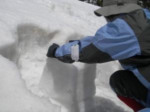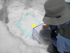 スライドした層を観察すると、透明のキラキラとした氷の粒の集まり(のように私は見えました)でした。雪の結晶の結合力が弱くなっているそうです。