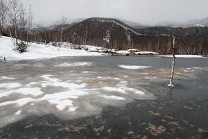 松本事務所付近のサクラはようやく三分咲きとなり、今週末に満開を迎えそうです。今日は連休を前にして雪の降る中、乗鞍高原の状況を見てきました。一の瀬園地駐車場や三本滝駐車場までは車で入れますが、周辺の遊歩道はまだまだ残雪が多く残っています。例年ですと、一の瀬園地奥の水芭蕉群生地のミズバショウが見頃を迎え始めますが今年は遅れているようです。