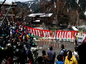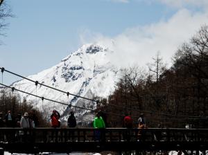 本日は上高地の開山祭に参加してきました。昨日から今朝にかけて降雪がありましたが、式典の始まるころには青空も見えていました。気温が上昇し足下がぬかるんでいましたが大勢の参加者でにぎわいました。例年になく雪が多く残っているので、雪景色は綺麗ですが履き物にご注意ください。