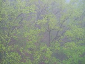 ガスの中に浮き上がる新緑の緑も美しかったです。