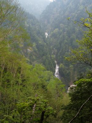 次に訪れた滝は、「池之俣御輿(みこし)滝」です。この滝は、遠くからでないと全容を見ることができません。