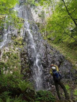雄滝の隣には雌滝がありますが雄滝ほどは近づけません。およそ8時間のコース最後に「布引滝」が姿を現します。たくさんの伏流水が溢れ出しているようです。