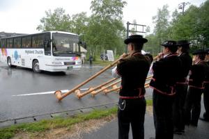 今日は県道乗鞍岳線(エコーライン)の開通式が乗鞍観光センター前で行われました。あいにくの雨でしたが、ホルンの調べにのって出発するバスを見送りました。ホルンは地元のホルン愛好会の方々が吹奏していて、上高地・乗鞍高原関連のイベントにはほとんど出席されています。