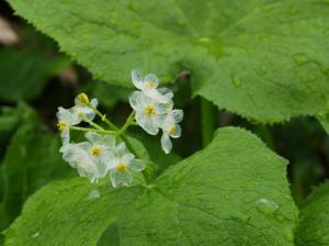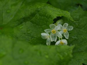 13日は宮西ARと小谷村にある栂池自然園に行きました。時折強い雨の降るあいにくの天気でしたが、普段目にできない雨の日の花を見ることができました。自然園は木道が整備されていますが、今年は残雪が例年に比べて多く、まだ雪に覆われている場所も多数あります。また楠川の公衆トイレは今冬の雪害により破損していて使えません。雪が多く残っていても、既にたくさんの花が開花していて、来園者のお目当ての花も人によって違うようでした。私は今年何度も目にしているサンカヨウの花が、雨で透けているのが気に入りました。