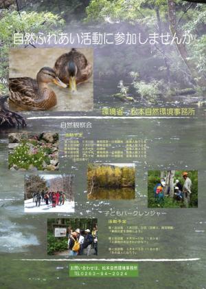 松本事務所は今日も雨です。今週は雨のため外での仕事がほとんどできませんでした。事務所での仕事に、自然観察会の準備や事務所からのお知らせのポスター作りがあります。今週作成したポスターを紹介します。