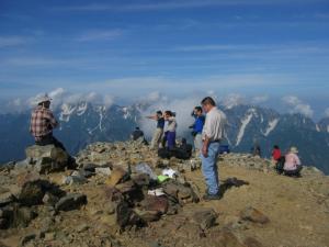 夏山シーズンで登山者の方も多く、南峰では十数人の人たちと一緒になりました。