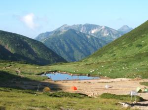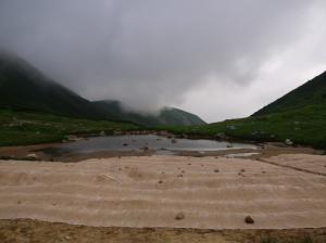23日?25日は平湯自然保護官の手伝いで岐阜県の新穂高から双六岳に入りました。双六小屋のそばには美しい双六池がありますが、土砂の流入が増えています。その対策として、この池の周辺に森林管理署とボランティアとで自然再生マットを敷設する作業をしました。