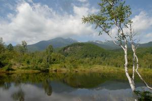 ↓まいめの池から乗鞍岳を望む