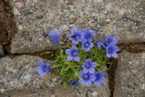 ↓石壁に咲くイワギキョウ