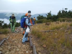 ↓登山道周辺は植生再生のネットが敷設されています