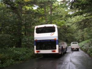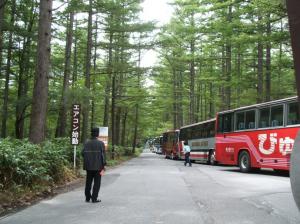 8月や秋の紅葉シーズンに観光バスの利用が集中するのは想像できますが、初秋の9月も混み合っています。特に今日は、車道上に故障車(観光バス)が発生するというイレギュラーな状態が重なったため、渋滞に拍車をかけたようです。上高地を楽しまれた後に帰る段階になって、下山に時間がかかってしまい、乗客のみなさんがお気の毒でした。