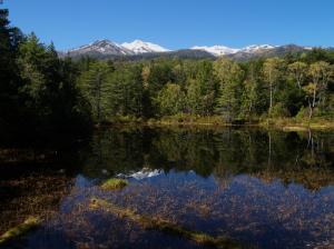 ↓乗鞍高原の牛留池から乗鞍岳を望む