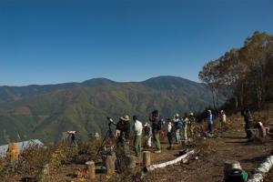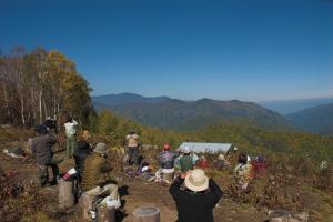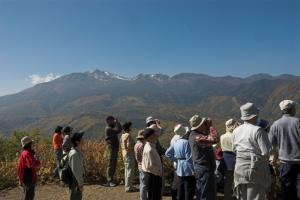 秋の晴天に恵まれた今日(15日)は、今年度3回目の乗鞍高原自然観察会を行いました。コースは、休暇村?牛留池?善五郎の滝?一の瀬園地間をゆっくり紅葉を眺めながら徒歩で、その後マイクロバスにのって白樺峠まで移動して「鷹の渡り」を見るという秋の乗鞍高原が満喫できるものです。紅葉はちょうど見頃を迎えたばかりで、参加者のみなさまに満足していただけたようです。