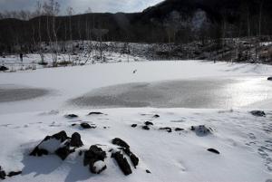 今日は寒波の後の乗鞍高原の状況を見てきました。先週(11月29日)はまるで雪がなかったのが嘘のような冬景色となっていました。まいめの池周辺は10cmくらいの積雪があり、湖面は凍って雪が積もりだしていました。乗鞍高原の一の瀬園地は冬は歩くスキー(クロスカントリー)やスノーシューでの絶好の散策場所となります。まいめの池周辺は冬でも楽しめる景観ポイントですが、車で入ることはできません。※今日はまだ積雪が少なく、冬タイヤで入れました