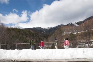 3月3?4日に行われた乗鞍高原子どもパークレンジャーの二日目は、「雪上パトロール」と題して、休暇村から善五郎の滝を見学に行きました。雪道の途中では動物の足跡を探したり、自然を観察しながら歩きました。