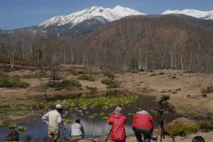 写真からも分かると思いますが、乗鞍高原が新緑で美しくなるのはこれからの季節です。もし、残雪に覆われた乗鞍岳を背景に雄大な風景を撮影するのならば、方角の関係で午前中がお勧めです。