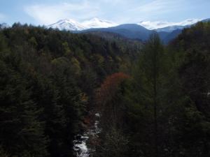 ↓県道の鈴蘭橋から眺めた乗鞍岳