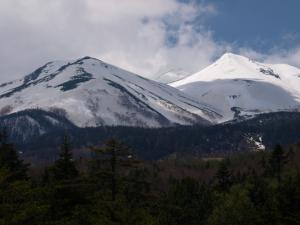 22日も乗鞍高原は晴天でした。一時は黄砂で薄茶色になった剣ヶ峰が真っ白に輝いているのは、先週末の降雪によると思われます。