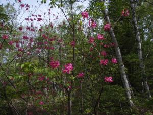 先週金曜日(26日)に大雨が降ったせいか、真っ白だった乗鞍岳剣ヶ峰(標高3026m)が地肌を見せ始めました。一方、乗鞍高原では本格的な花の季節を迎えようとしています。鈴蘭地区から一の瀬園地に至る”白樺の小径”ではシラカバの間にムラサキヤシオが綺麗な花を咲かせていました。牛留池では水面にミツガシワが白い花を開いています。いずれも見頃になるのはこれからです。また至る所でスズランやベニバナイチヤクソウがつぼみをつけていました。