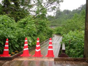 みごとに木道をふさいでます。でも通行は可能です。