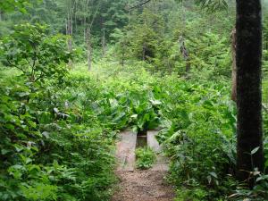 前回調査日から約1ヶ月経過しましたが全体に新緑が増し、つぼみだった花たちも徐々に咲いてきてました。白い部分の仏炎苞(ぶつえんほう)をつけたミズバショウは残念ながらもうほとんど見られませんが、代わりにコバイケイソウ・イワカガミ・キヌガサソウなど、時期に応じた植物が咲き始めています。