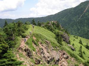 根子岳から四阿山に向かう人より、四阿山から根子岳に縦走する人が多いようです。