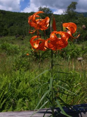 他にも、一の瀬園地内では、強い日差しの下でコオニユリが多数開花していました。このオレンジ色はかなり目立ちますね。