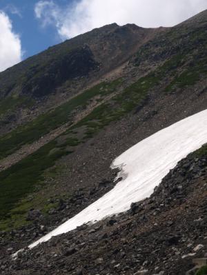 ↓融けて小さくなった大雪渓と剣ヶ峰