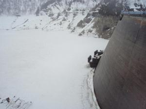 4月に入り暖かく感じる日が出てきました。でも周りの気温が高くても、凍った湖面を見ると寒く感じたりしませんか?黒部湖の氷は6月までには溶けてしまいますが、ここはまだまだ真冬の景観です。