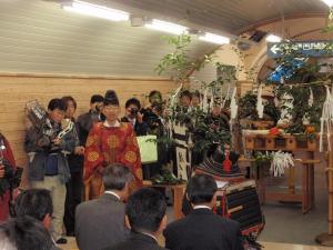 本来は黒部ダムの上で行われる予定でしたが、降雨によりトロリーバス待合所にて神事が行われました。なんとこの日は室堂でも雨が降っていると言うことで、地元の人も驚かれていました。