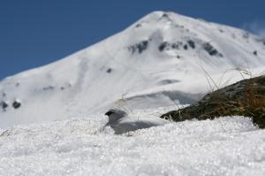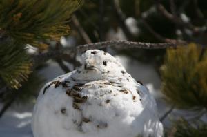 雪のビーズの上で休憩中のオス、これから縄張りを維持する為に大変な日常生活をすごす。