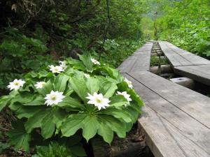 ※園内の一部で古くなった木道を新しい木道に交換する工事が行われています。また天狗原・白馬乗鞍岳方面への登山道において登山口から約5分ほどの地点で一部崩壊している個所がありますので通行の際は落石やスリップに気を付けてください。(通行用の補助ロープが設置されています)