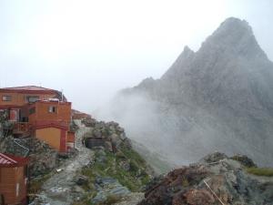 この悪天候でお盆以降荷揚げのヘリが飛べず、山荘の食材も底をつきかけている様子。人気のコーヒーは既に品切れとなっていましたが贅沢は言えません。こんな厳しい環境の所で食事が提供されていること自体、特別なことなんですよね。昔は全て自分で担いで登れる人しか来れなかった秘境も今では大勢の人が楽しめるようになりました。ただし、くれぐれも装備は怠らず、自分の体力を自覚し、悪天候時には断念する勇気を忘れないでください。