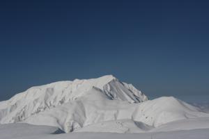 ミクリヶ池は凍り付いてしまいました。ここから見た雄山