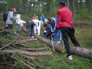 湯の丸高原では毎年、地元の各関係者をはじめボランティアの方々によってレンゲツツジの保護活動が年に数回行われております。活動としてはレンゲツツジの生育状況をよくするため、周囲の整備を行います。主に、剪定や場合によって周囲の木を伐採したりして日当たりを良くしたりします。本年も5月末より活動が始まりました。今回は本年度2回目の保全作業が行われました。それに合わせて、東京から力強い助っ人が来てくれました。郁文館高等学校の生徒さんです。