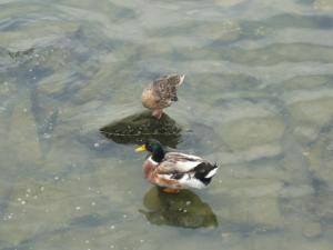 *ガー君はカモ美を守るかのようにいつも寄りそっている。