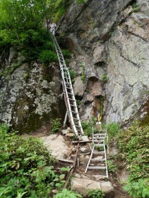 下山は上高地方面へのルートをとりました。比較的なだらかですが、長~いハシゴが待っています。