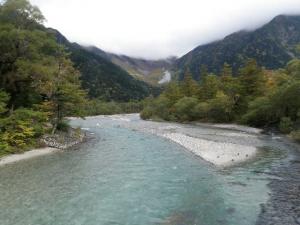 写真は河童橋から見た穂高、殆ど雲に覆われていたので様子を伺う事は出来ませんでしたが穂高連峰では初冠雪が確認されました。