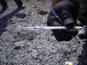 注射器に似たガス測定キットでガスの噴出量を確認します。