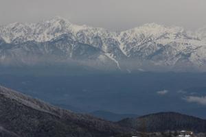 菅平から見た後立山ですが、こちらはさらに標高が高いだけあってすでに厳冬期に近い姿になっています。