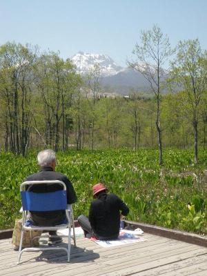 池を一周する間に5組ほど声をかけ、記念写真の撮影係を買ってでました。本当に皆さん楽しんで頂いている様子で、その笑顔に撮影する側の私も癒して頂きました。山側の観察場所ではご夫婦がゆったり景色を楽しんでいらっしゃいました。