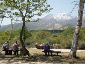 遊歩道に入るとすぐ、多くの利用客の方々が木陰で休みながら景色を眺めたり、じっくり腰をすえて写生をしたり、いもり池を一周する遊歩道をゆっくり散策したりと新緑のいもり池を楽しんでいらっしゃいました。目にしみるような輝くグリーンは、この時期にしか味わえない妙高高原の代表的な色彩の一つだと思います。