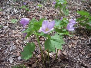 その後、八間山への歩道途中に群生しているシラネアオイの開花状況を確認してきました。