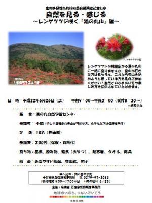 生物多様性条約締約国会議(COP10)が平成22年10月に名古屋市で開催されます。開催を記念し、万座自然保護官事務所では「自然を見る・感じる~レンゲツツジ咲く「湯の丸山」編~」と題し自然観察会を行います。