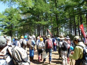 その保全作業が6月12日に行われ、鹿沢万座パークボランティアの皆さんと参加してきました。この日は天候も良く、地元の嬬恋高校の生徒やボランティアなど総勢70名が、レンゲツツジ保存会の方の指導の下、一生懸命作業に取り組んでいらっしゃいました。