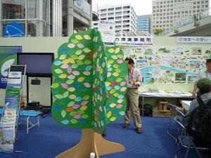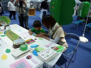 環境宣言は、中部地方環境事務所のブースを訪れた方々に書いてもらいました。書いてもらったのは、木の葉形メッセージカード。実は5月22日が、グリーンウエィブの日であったため、環境宣言でグリーンウェイブを起こそうと考えたからです。