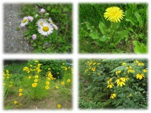 <すっかり見慣れた道ばたの草にも、侵略的な外来種がたくさん。左上から、ハルジオン・セイヨウタンポポ・オオキンケイギク・オオハンゴンソウ>