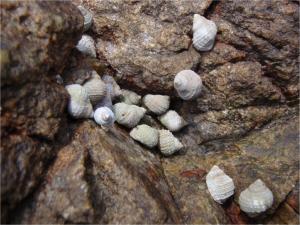 この貝は、潮間帯(ちょうかんたい)と呼ばれる潮が満ち引きする場所で見られ、海辺にいながら波を避けて岩場にくっついています。例え水の中に移動させたとしても、乾いた岩の上まで上がってきて、波しぶきがすこーしかかるだけの場所に落ち着きます。生息地は、北海道南部以南。沿岸部であれば、ほぼ確実に見つけることができます。